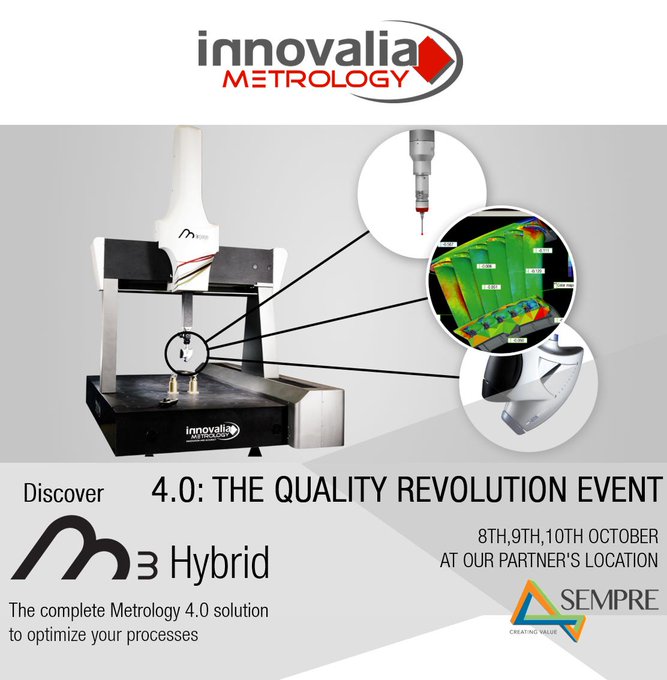 During the 8th, 9th and 10th of October Innovalia Metrology will present M3 hybrid at the 4.0: THE QUALITY REVOLUTION EVENT thanks to its close partner in the UK, The Sempre Group. The event will be free and will take place at The Sempre Group installations in Barnwood, Gloucester.