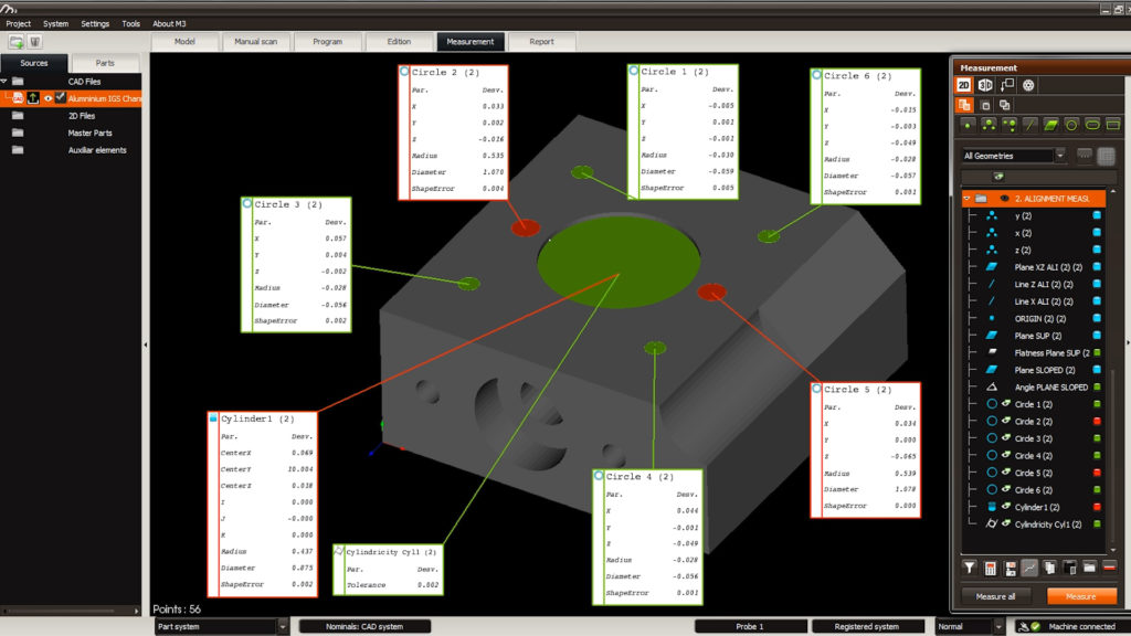With capacity to capture more than 60,000 data points per second, Innovalia Metrology’s proposal surpasses other market proposals in speed, precision, and adaptability. M3 Software is not only the result of years of experience and innovation, it is the opportunity to simplify the measurement processes. The results we are obtaining by incorporating M3 Hybrid (high speed optical sensor Optiscan + M3 Software) to a traditional touch probe CMM are already turning heads. The great integration between M3 Hybrid Software and Optiscan is reducing the production times by 30%.